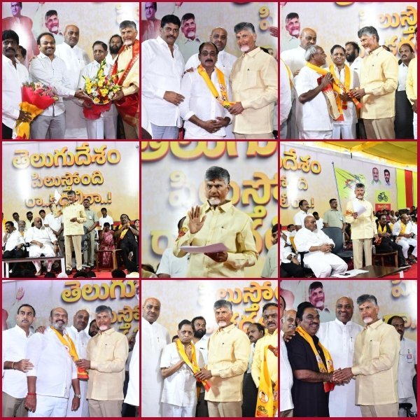 వైసీపీ ఎమ్మెల్సీ సి.రామచంద్రయ్య, రాయచోటి మాజీ ఎమ్మెల్యే గడికోట ద్వారకానాథ్ రెడ్డి, సీనియర్ నాయకులు దాడి వీరభద్రారావు, ఆయన తనయులు దాడి రత్నాకర్, దాడి జైవీర్, బాపట్ల జిల్లా, కర్లపాలెం జడ్పీటీసీ పిట్ల వేణుగోపాల్ రెడ్డి, అనంతపురంనకు చెందిన డా.కె.రాజీవ్ రెడ్డితో పాటు పలువురు ముస్లిం నేతలు బుధవారం టీడీపీ కేంద్ర కార్యాలయంలో చంద్రబాబు సమక్షంలో పార్టీలో చేరారు. వీరికి చంద్రబాబు పార్టీ కండువాకప్పి సాదరంగా ఆహ్వానించారు.