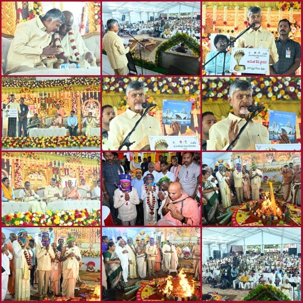 -కొలనుకొండ గోకుల క్షేత్రంలో వెంకటేశ్వర ఆలయంలో అనంత శేష స్థాపన కార్యక్రమంలో పాల్గొన్న సీఎం చంద్రబాబు నాయుడు
