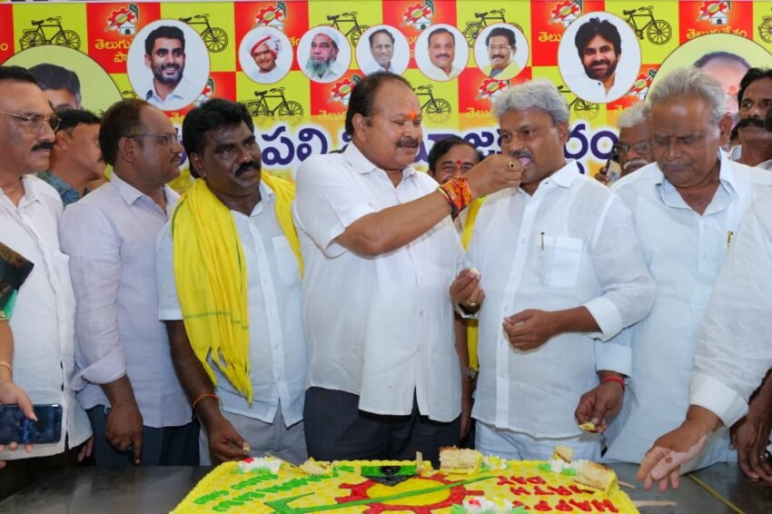 పల్నాడు జిల్లా సత్తెనపల్లి, మహానాడు : సత్తనపల్లి పట్టణం రఘురామ్ నగర్ ప్రజావేదికలో శనివారం చంద్రబాబు పుట్టినరోజు సందర్భంగా కన్నా లక్ష్మీనారాయణ, తెలుగుదేశం పార్టీ రాష్ట్ర అధికార ప్రతినిధి పిల్లి మాణిక్యాలరావు కేక్ కట్ చేశారు. ధ్వంసమైన నవ్యాంధ్ర పునర్నిర్మాణానికి శంఖం పూరించిన సమరయోధుడు చంద్రబాబుకు శుభాకాంక్షలు తెలిపారు. ఈ కార్యక్రమంలో కూటమి నాయకులు, కార్యకర్తలు పాల్గొన్నారు.