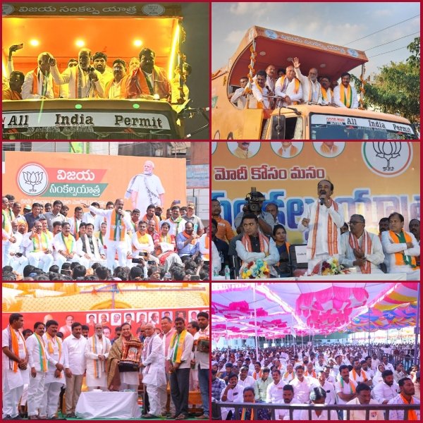 తెలంగాణ రాష్ట్రంలో భారతీయ జనతా పార్టీ ఎన్నికల సమరశంఖం పూరించింది. కేంద్రంలో నరేంద్ర మోదీ మూడోసారి హ్యాట్రిక్ విజయం సాధించేలా, రాష్ట్రంలోని 17కు 17 సీట్లలో విజయం సాధించే లక్ష్యంతో విజయసంకల్ప యాత్రను ప్రారంభించింది. పార్లమెంటు ఎన్నికల్లో బీజేపీని మరోసారి అధికారంలోకి తీసుకొచ్చి, నరేంద్ర మోదీని మూడోసారి ప్రధానమంత్రిని చేసే యజ్ఞంలో తెలంగాణ ప్రజలను భాగస్వాములను చేసేలా, తెలంగాణలో అన్ని పార్లమెంటు స్థానాల్లో విజయం సాధించేందుకు ప్రజల ఆశీర్వాదం తీసుకునేలా చేపట్టిన విజయసంకల్ప యాత్రకు అద్భుత స్పందన లభించింది.