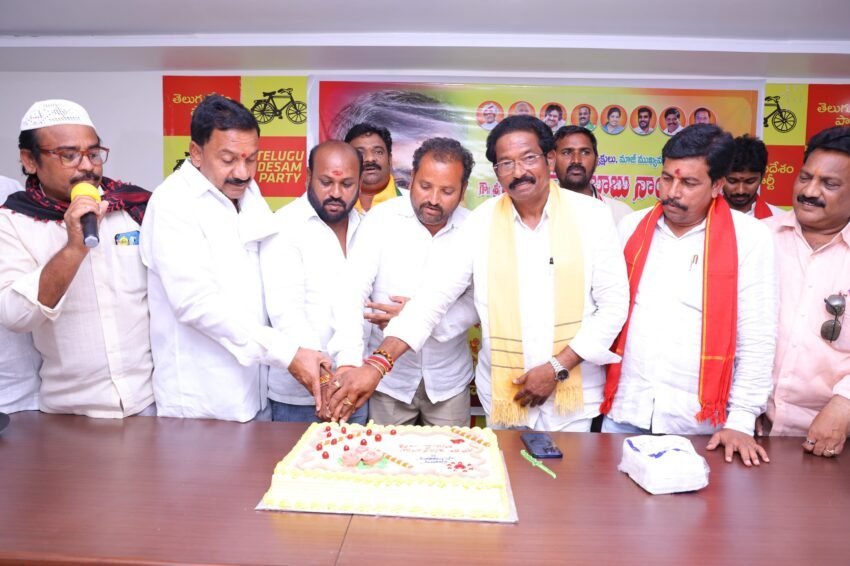 వినుకొండ, మహానాడు: వినుకొండ పట్టణ తెలుగుదేశం పార్టీ కార్యాలయంలో నారా చంద్రబాబునాయుడు జన్మదిన వేడుకలు శనివారం ఘనంగా నిర్వహించారు. పార్టీ శ్రేణులు ఏర్పాటు చేసిన భారీ కేకును కూటమి అభ్యర్థి జి.వి.ఆంజనేయులు, మాజీ ఎమ్మెల్యే మక్కెన మల్లికార్జునరావు, నిశ్శంకర శ్రీనివాసరావు కట్ చేశారు. ఈ కార్యక్రమంలో మూడు పార్టీల నాయకులు, కార్యకర్తలు పాల్గొన్నారు.