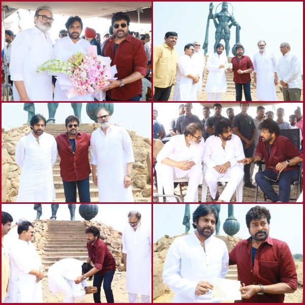 సోమవారం ఉదయం పదిగంటలకు లొకేషన్ కు చిన్నన్న నాగబాబు తో కలసి లొకేషన్ కు చేరుకున్న పవన్ కళ్యాణ్ కి చిరంజీవి ప్రేమపూర్వక ఆలింగనంతో స్వాగతం పలికారు. చిరంజీవి ఆశీర్వచనం అందుకున్న పవన్ కళ్యాణ్ ఉద్వేగానికి లోనయ్యారు. చిరంజీవి పాదాలకు నమస్కరించారు. పార్టీ స్థాపించి పదేళ్లు పూర్తవుతున్న తరుణంలో ఎన్నో ఏళ్లుగా అన్న చిరంజీవి ఆశీర్వచనం కోసం ఎదురు చూస్తున్న పవన్ కళ్యాణ్ కి – అన్నయ్య ఆశీస్సులు సంభ్రమాశ్చర్యాలు కలిగించాయి.నీ వెనుక నేనున్నాను అనే భరోసా దక్కింది. అనంతరం సోదరులు ముగ్గురూ కొంత సేపు సంభాషించుకున్నారు.