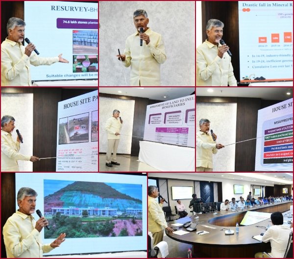 అనంతరం చంద్రబాబు నాయుడు మాట్లాడుతూ….‘‘గత ప్రభుత్వం పంచ భూతాలను సైతం మింగేసింది. రాష్ట్రంలో పెద్ద ఎత్తున భూ కుంభకోణ జరిగింది. ఖనిజ సంపద, అడవులను ఇష్టానుసారంగా ధ్వంసం చేశారు. మాకు అందిన రికార్డుల ప్రకారం కంటే ఎక్కువగానే దోపిడీ జరిగింది. ఆర్థిక ఉగ్రవాదులందారూ వినూత్నంగా దోపిడీ పంథాను ఎన్నుకున్నారు. విశాఖ, ఒంగోలు, చిత్తూరు, తిరుపతిలో జరిగిన సహజవనరుల దోపిడీ ఒక కేస్ స్టడీ.