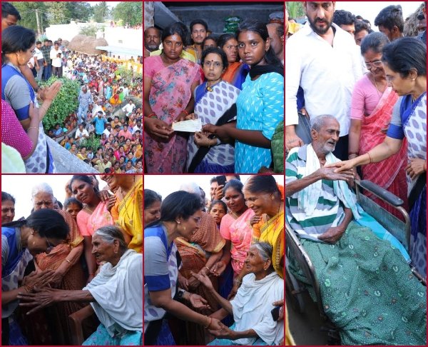 అదేవిధంగా దారిమధ్యలో మరో వృద్ధురాలు లేవలేని స్థితిలో ఉండి భువనమ్మను చూడాలని కుటుంబ సభ్యుల వద్ద పట్టుపట్టడంతో వారు రోడ్డుప్రక్కన ఓ కుర్చీలో ఆమెను కూర్చోబెట్టి భువనమ్మ కోసం ఎదురు చూస్తున్నారు. దీన్ని గమనించిన భువనమ్మ వెంటనే ఆ వృద్ధురాలి వద్దకు వెళ్లారు..ఆ వృద్ధురాలు భువనమ్మను ఆప్యాయంగా చేయి పట్టుకుని పలకరించి…బాగున్నావా అమ్మ అని పలకరించారు.