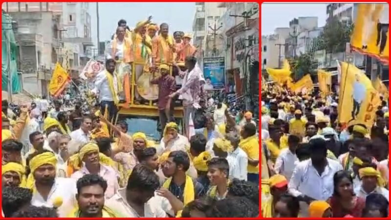 పల్నాడు జిల్లా నరసరావుపేట, మహానాడు : నరసరావుపేట టీడీపీ ఎమ్మెల్యే అభ్యర్థి చదలవాడ అరవిందబాబు నామినేషన్ ర్యాలీ కార్యకర్తల కేరింతల నడుమ ఉత్సాహంగా సాగింది. నరసరావుపేట ప్రధాన వీధులు హోరెత్తాయి. మండుటెం డను లెక్కచేయకుండా నియోజకవర్గం నలుమూలల నుంచి వేలాదిగా నాయకులు, కార్యకర్తలు, ప్రజలు తరలివచ్చి ర్యాలీలో పాల్గొన్నారు. ఈ ర్యాలీ మల్లమ్మ సెంటర్ మీదుగా ప్రధాన రహదారికి చేరుకుంది. ర్యాలీలో ప్రజలు, మహిళలు, యువత అడుగడుగునా సంఫీుభావం తెలిపారు.