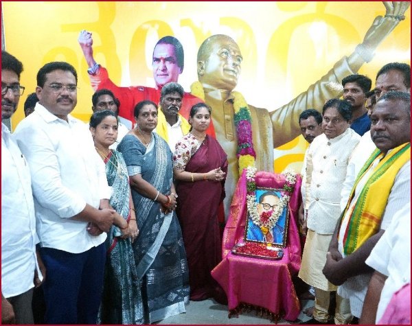 గుంటూరు, మహానాడు: గుంటూరు పశ్చిమ నియోజకవర్గ టీడీపీ కార్యాలయంలో ఆదివారం భారతరత్న అంబేద్కర్‌ జయంతి నిర్వహించారు. ఈ సందర్భంగా ఆయన చిత్రపటానికి పూలమాలలు వేసి నివాళులర్పించారు. పశ్చిమ నియోజవర్గం టీడీపీ, జనసేన, బీజేపీ ఉమ్మడి అభ్యర్థి గళ్లా మాధవి పాల్గొన్నారు. సామాజిక అణచివేత, వివక్షలను రూపుమాపి దళిత వర్గాల అభ్యున్నతికి పాటుపడిన అంబేద్కర్‌ అందరికీ ఆదర్శమన్నారు. ఈ కార్యక్రమంలో కూటమి నేతలు, కార్యకర్తలు, దళిత నేతలు పాల్గొన్నారు.