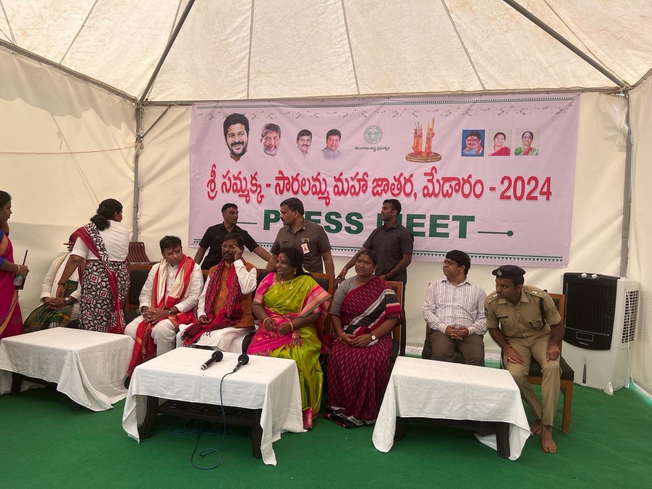 మేడారం మహా జాతరలో పాల్గొనేందుకు వచ్చిన గవర్నర్ దంపతులు, గిరిజన మంత్రికి రాష్ట్ర పంచాయతీరాజ్ గ్రామీణ అభివృద్ధి శాఖ మంత్రి దాసరి అనసూయ (సీతక్క) , ఐటీ పరిశ్రమల శాఖ మంత్రి దుదిల్ల శ్రీధర్ బాబు ఘన స్వాగతం పలికారు. అనంతరం మీడియా సెంటర్ వద్ద ఏర్పాటు చేసిన పత్రిక సమావేశంలో తెలంగాణ గవర్నర్ తమిళ సై సౌందర్య రాజన్ మాట్లాడుతూ తెలంగాణ రాష్ట్రంలోని ప్రజలందరూ ముఖ్యంగా గిరిజనులు సంతోషంగా ప్రశాంతంగా ఆరోగ్యవంతంగా ఉండాలని అమ్మవారిని కోరుకున్నానని, గిరిజనులకు అతి పెద్ద పండుగ మేడారం మహా జాతరలో 3వ సారి పాల్గొనడం తన అదృష్టంగా భావిస్తున్నానని గవర్నర్ తెలిపారు.