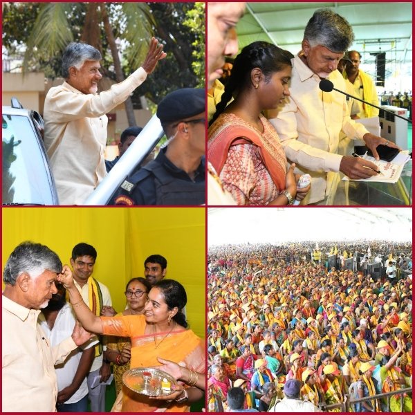 మరోసారి నమ్మి మోసపోవద్దు. ఆడబిడ్డలకు పుట్టిల్లు తెలుగుదేశం పార్టీ. 1986లో ఎన్టీఆర్ మహిళలకు ఆస్తిలో హక్కు కల్పించారు. కానీ నేడు జగన్ రెడ్డి చెల్లికి ఆస్తిలో హక్కు ఇవ్వకుండా అప్పు ఇచ్చాడు. మహిళలు చదువుకొని ఉన్నతస్థానాల్లో ఉండాలని అన్న ఎన్టీఆర్ మహిళా వర్సిటీ స్థాపించారు. ఇంట్లో ఉండే ఆడవారిని రాజకీయాల్లోకి తెచ్చారు. మహిళలు చదువు కోవాలని నేను ప్రతి కిలోమీటరుకు ఒక ప్రాథమిక పాఠశాల , ప్రతి 3 కిలోమీటర్లకు ఒక అప్పర్ ప్రైమరీ, ప్రతి 5 కిలోమీటర్లకు ఒక హైస్కూలు, ప్రతి మండలానికీ జూనియర్ కళాశాల, ప్రతి డివిజన్ కో ఇంజనీరింగ్ కాలేజ్, ప్రతి జిలాకో మెడికల్ కాలేజీతో పాటు వందలాది ఇంజనీరింగ్ కాలేజీలు తీసుకొచ్చాను.