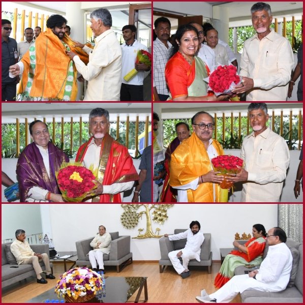 టీడీపీ అధినేత చంద్రబాబు నాయుడుతో జనసేన, బీజేపీ ముఖ్యనేతలు భేటీ అయ్యారు. ఉండవల్లిలోని చంద్రబాబు నాయుడు నివాసంలో జనసేన అధ్యక్షులు పవన్ కళ్యాణ్ , రాష్ట్ర బీజేపీ అధ్యక్షురాలు పురంధరేశ్వరి , జాతీయ ప్రధాన కార్యదర్శి అరుణ్ సింగ్ , మాజీమంత్రి సిద్ధార్థ నాథ్ సింగ్ సమావేశం అయ్యారు. కూటమి నేతల ప్రచారం, ఇతర రాజకీయ అంశాలపై నేతలు చర్చించారు.