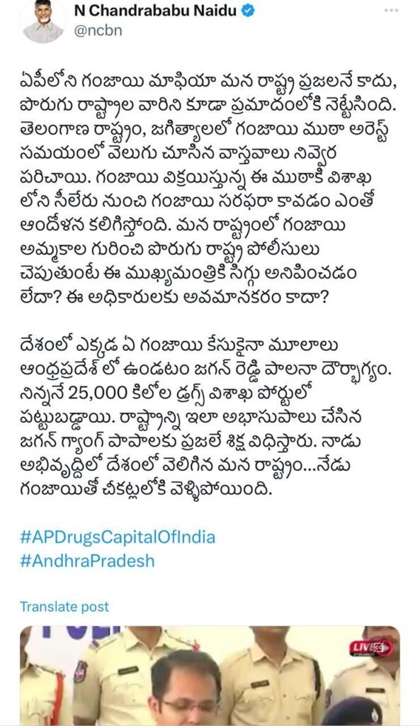 – గంజాయి అక్రమ రవాణాపై టిడిపి అధినేత చంద్రబాబు నాయుడు