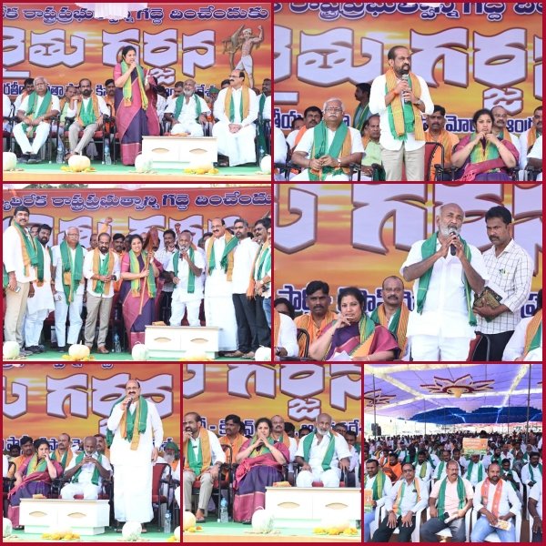 సభకు అధ్యక్షత వహించిన చిగురుపాటి కుమార స్వామి మాట్లాడుతూ.. ఇరిగేషన్ శాఖ, వ్యవసాయ శాఖ మంత్రుల పై ఘాటు వ్యాఖ్యలు చేశారు. బిజెపి కిసాన్ మోర్చా ఆధ్వర్యంలో రైతు గర్జన.రైతు వ్యతిరేక రాష్ట్ర ప్రభుత్వాన్ని గద్దె దించేందుకు రైతులంతా నడుం కట్టాలని పిలుపు . రాష్ట్రం లో రైతుల పరిస్థితి చాలా దుర్భరంగా ఉంది. కేంద్రం రైతాంగం కోసం ఇచ్చిన నిధులు జగన్ ప్రభుత్వం దారి మళ్లించింది.అన్నదాతల ఆవేదనను జగన్ అసలు పట్టించుకోలేదు.రైతు సమస్యలు పై బిజెపి అనేక పోరాటాలు చేసింది. నష్టపోయిన రైతులకు నష్ట పరిహారం కూడా ఈ ప్రభుత్వం ఇవ్వలేదు.ఈ ప్రభుత్వం దిగిపోయే వరకు రైతులు అందరూ సంఘటితంగా ఉండాలన్నారు. రైతులను సభకు రానివ్వకుండా అడ్డుకున్న ప్రభుత్వం పై తాడోపేడో తేల్చుకుందామన్నారు.
