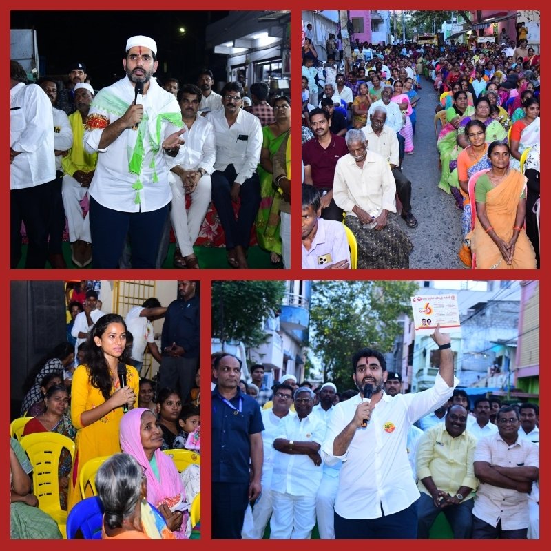 ప్రజలు 25సంవత్సరాలుగా రెండు కుటుంబాలకు అవకాశమిచ్చారు. మంగళగిరి ప్రజల జీవితాల్లో ఏమైనా మార్పువచ్చిందా? సమస్యలు పట్టించుకున్నారా? ఒక్కరికైనా ఇంటిపట్టా ఇచ్చారా? ఎన్నికల్లో గెలిచాక ఎప్పుడైనా ముఖం చూపించారా? రెండునెలలు ఓపికపట్టండి. ఎమ్మెల్యేగా ఎన్నికయ్యాక గత 25 ఏళ్లుగా నియోజకవర్గానికి జరిగిన నష్టాన్ని భర్తచేసి, మంగళగిని అభివృద్ధి పథంలో నడిపిస్తా. భూగర్భ డ్రైనేజితో మురుగునీటి సమస్యను శాశ్వతంగా పరిష్కరిస్తాం. కృష్ణానది నుంచి పైప్ లైన్ ద్వారా ఇంటింటికీ తాగునీటి కుళాయి అందజేస్తాం. నియోజకవర్గ పరిధిలో అన్నిరోడ్లు నిర్మిస్తాం. మంగళగిరికి పరిశ్రమలు తెచ్చి యువతక ఉద్యోగాలు కల్పించే బాధ్యత నాది. మీ ఇంటిబిడ్డలా ఆశీర్వదించి రాబోయే ఎన్నికల్లో నన్ను ఆశీర్వదించి అత్యధిక మెజారిటీతో గెలిపించండి, ఎంతఎక్కువ మెజారిటీ ఇస్తే చంద్రబాబుతో అంత బలంగా పోరాడి మంగళగిరి అభివృద్ధికి నిధులు తెస్తానని లోకేష్ పేర్కొన్నారు.