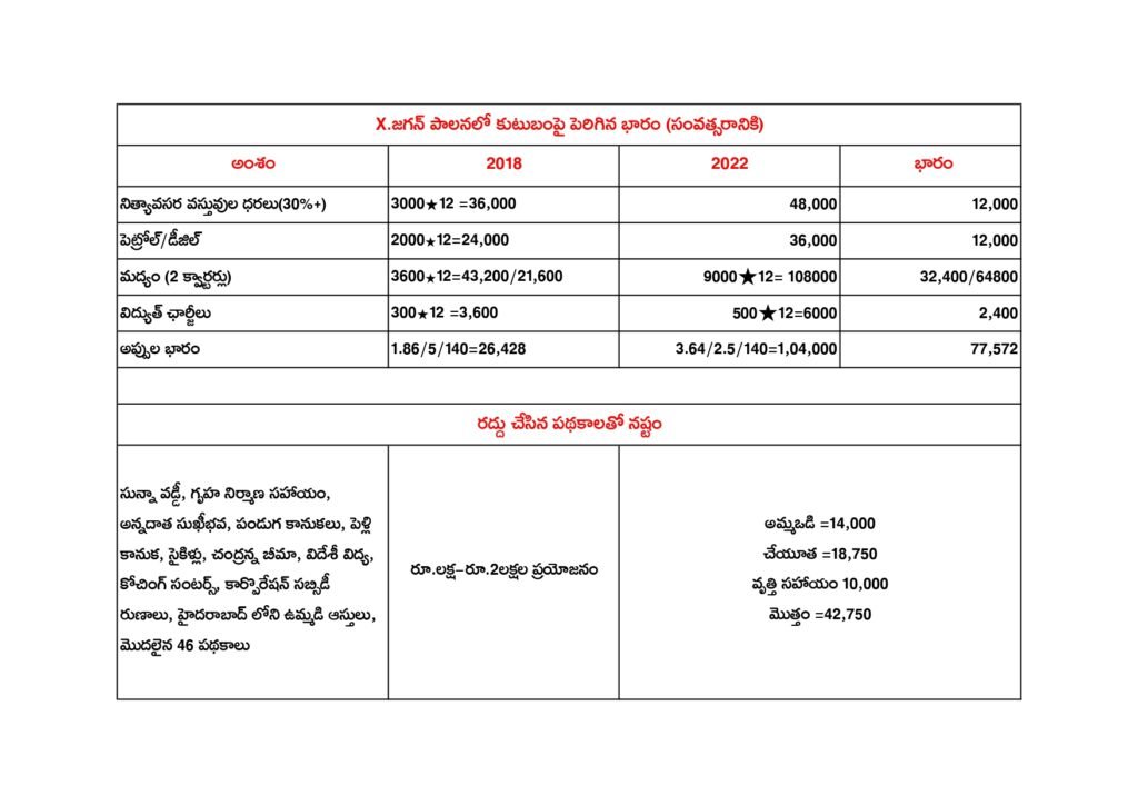 – జగన్ రెడ్డి అధికారంలోకి వచ్చాక దాదాపు 9 సార్లు ఛార్జీలు పెంచారు.