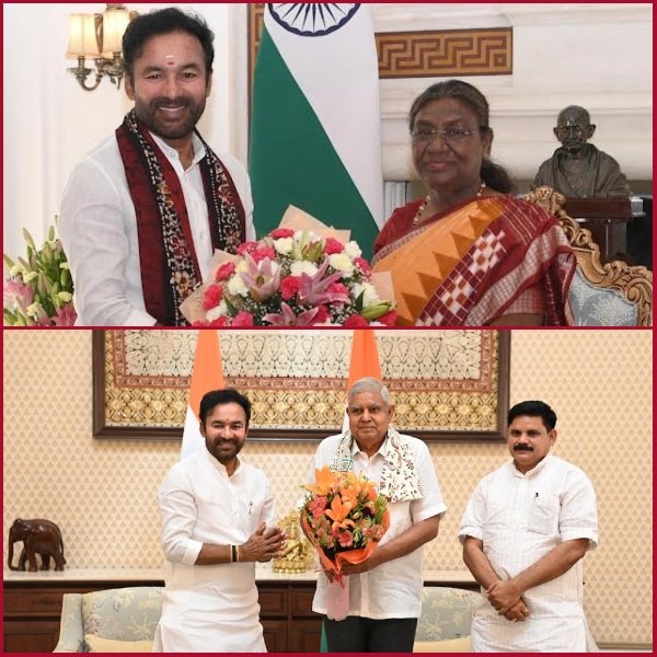 కేంద్ర బొగ్గు, గనుల శాఖ మంత్రి గంగాపురం కిషన్ రెడ్డి ఇవాళ (శుక్రవారం) భారత రాష్ట్రపతి ద్రౌపది ముర్ము, భారత ఉపరాష్ట్రపతి జగదీప్ ధన్కర్లను మర్యాదపూర్వకంగా కలిశారు.