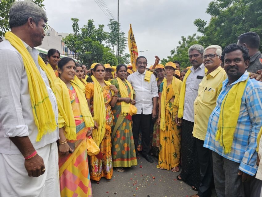 నరసరావుపేట: నియోజకవర్గంలో జగన్‌రెడ్డి అరాచకాలను, అకృత్యాలకు ఎదు రొడ్డి చదలవాడ అరవిందబాబు గెలిచిన నేపథ్యంలో పమిడిపాడు గ్రామ టీడీపీ నేతలు కోటప్పకొండకు పాదయాత్ర చేపట్టారు. చదలవాడ అరవిందబాబు దగ్గరుండి పాదయాత్రను ప్రారంభించారు. పార్టీ కోసం శ్రమించే కార్యకర్తలు ఉన్నంత వరకు తెలుగుదేశం పార్టీని అడ్డుకునే సత్తా ఎవరికీ లేదన్నారు. ప్రజల అండ, కార్యకర్తల ప్రోత్సాహంతోనే ఈ విజయం సాధ్యమైందని తెలిపారు. పార్టీని ప్రాణంగా భావించే కార్యకర్తలు తెలుగుదేశం పార్టీ సొంతమన్నారు. దేశంలో కార్యకర్తల ఆశీర్వాదంతో నడిచే పార్టీ తెలుగుదేశం మాత్రమేనన్నారు. కార్యకర్తల కష్టానికి ప్రతి ఫలం తప్పకుండా దక్కుతుందని, ప్రతి కార్యకర్తకు అండగా నిలిచి తీరుతానని హామీ ఇచ్చారు. ఈ కార్యక్రమంలో టీడీపీ నాయకులు, కార్యకర్తలు పాల్గొన్నారు.
