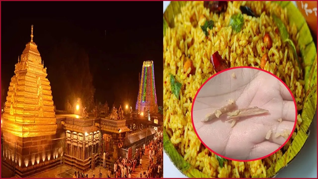 ద్వాదశ జ్యోతిర్లింగ క్షేత్రం శ్రీశైలం మల్లన్న దర్శనం కోసం తెలుగు రాష్ట్రాల నుంచి మాత్రమే కాదు.. దేశ విదేశాల నుంచి భక్తులు వస్తారు. మల్లన్న భ్రమరాంబ దంపతులను దర్శనం చేసుకుని తరిస్తారు. తాజాగా క్షేత్ర పరిధిలో భక్తులకు పులిహోర ప్రసాదం పంపిణి చేశారు. ఈ ప్రసాదంలో మాంసపు ఎముక రావడంతో కలకలం సృష్టించింది. భ్రమరాంబ అమ్మవారి ఆలయం వెనుక బ్రహ్మానందరాయ గోపురం ప్రసాదాల పంపిణీలో ఈ ఘటన చోటు చేసుకుంది.