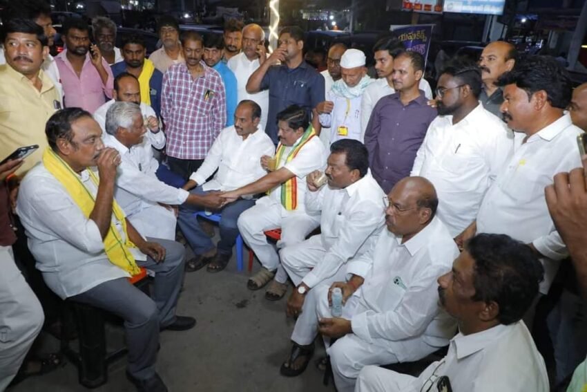 నరసరావుపేట, మహానాడు: నరసరావుపేట టీడీపీ కార్యాలయంలో శనివారం ముఖ్య నేతల ఆత్మీయ సమావేశం జరిగింది. జిల్లా పార్టీ అధ్యక్షుడు కొమ్మాలపాటి శ్రీధర్, ఎమ్మెల్సీలు చిరంజీవిరావు, జంగా కృష్ణమూర్తి ఆధ్వర్యంలో చదలవాడ అరవిందబాబును కలిశారు. ఎన్నికల ప్రణాళిక, ప్రచారం, భవిష్యత్తు అంశాలపై చర్చించారు. నరసరావుపేట గడ్డపై కూటమి జెండా ఎగరబోతుందని ఆశాభావం వ్యక్తం చేశారు. ఐదేళ్ల పాలనలో జరిగిన మేలు కంటే కీడే ఎక్కువ జరిగిందని అరవిందబాబు పేర్కొన్నారు. ఓటమి భయంతో దేనికైనా తెగించేందుకు పార్టీ శ్రేణులను సిద్ధం చేశారని, దీనిని తిప్పికొట్టేందుకు సిద్ధం కావాలని కోరారు.