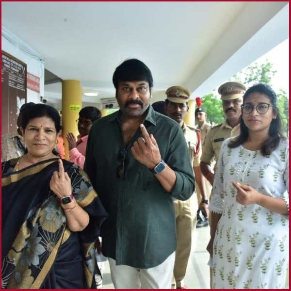 తెలంగాణలో లోక్ సభ ఎన్నికల పోలింగ్ ప్రశాంతంగా కొనసాగుతోంది. పలువురు ప్రముఖులు ఓటు హక్కు వినియోగించుకుంటున్నారు. సినీ ప్రముఖులు ఉదయాన్నే పోలింగ్ కేంద్రాలకు తరలివచ్చారు. జూబ్లీహిల్స్ క్లబ్లో కుటుంబసభ్యులతో కలిసి మెగాస్టార్ చిరంజీవి ఓటు వేశారు. చిరంజీవితో పాటు ఆయన సతీమణి సురేఖ, పెద్ద కుమార్తె సుస్మిత ఓటు హక్కు వినియోగించుకున్నారు.