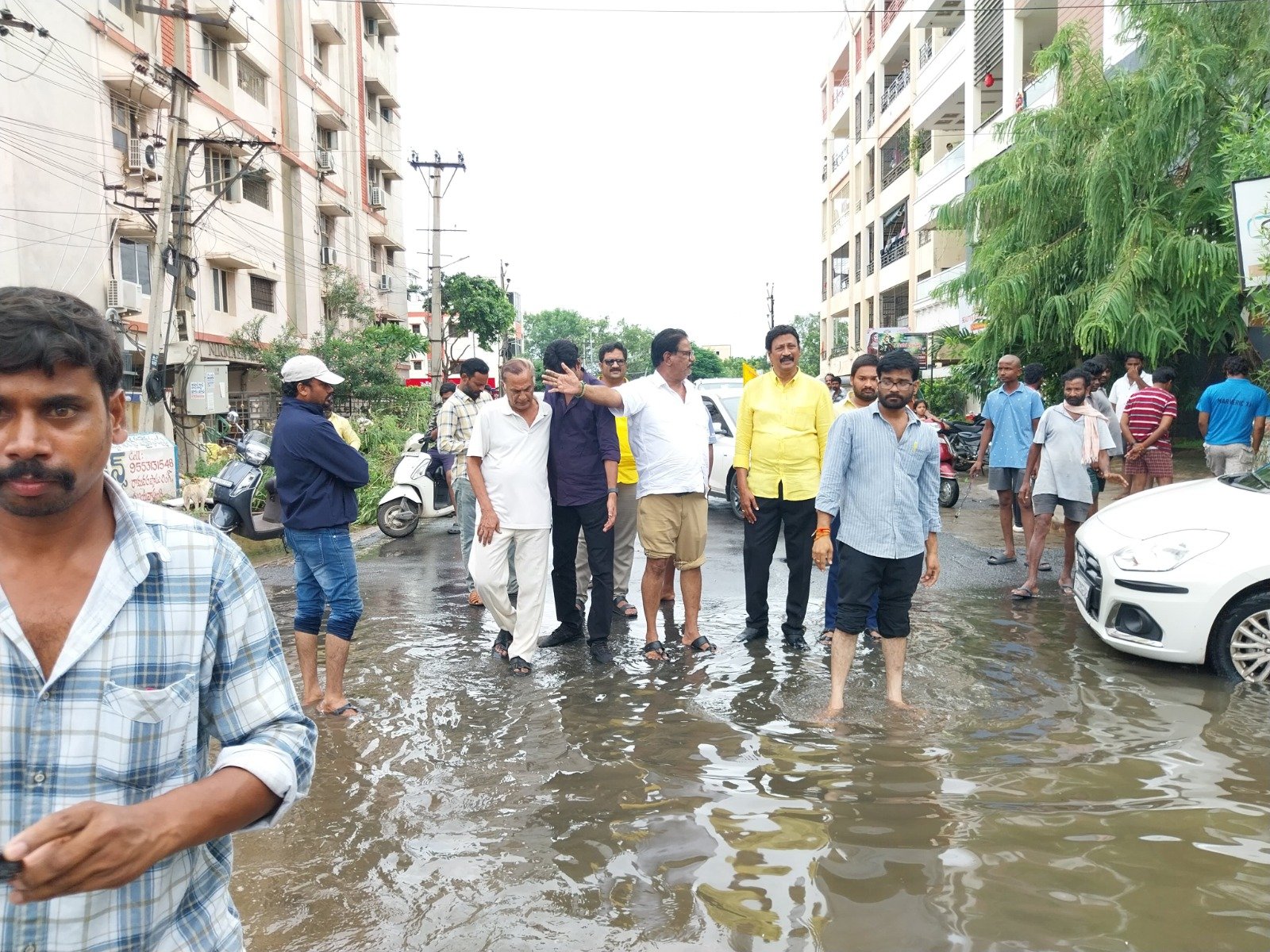 విజయవాడ, మహానాడు: ఎడతెరపి లేకుండా కురుస్తున్న వర్షాల కారణంగా ముంపు గురైన ప్రాంతాల్లో ఎమ్మెల్యే గద్దె రామమోహన్ స్థానిక కార్పొరేటర్ జాస్తి సాంబశివరావుతో కలిసి శనివారం ఉదయం పర్యటించారు. 4వ డివిజన్ పరిధిలోని శ్రీనివాసనగర్ బ్యాంక్ కాలనీ, భారతీనగర్, సి.టి.ఓ కాలనీ, వెంకటేశ్వరనగర్, అంబేద్కర్ నగర్, సెంట్రల్ ఎక్సైజ్ కాలనీ, గుణదల హరిజన వాడలతో పాటు పలు ప్రాంతాల్లో పర్యటించి అక్కడున్న పరిస్థితులపై స్థానిక నాయకులను అడిగి వివరాలు తెలుసుకున్నారు. ఈ కార్యక్రమంలో తూమాటి ప్రేమనాథ్, మిక్కిలినేని బుజ్జి, యలమంచలి రాజా, కె.వెంకటేశ్వరరావు, కోనేరు సురేష్, మండవ వెంకటేశ్వరరావు తదితరులు ఉన్నారు.