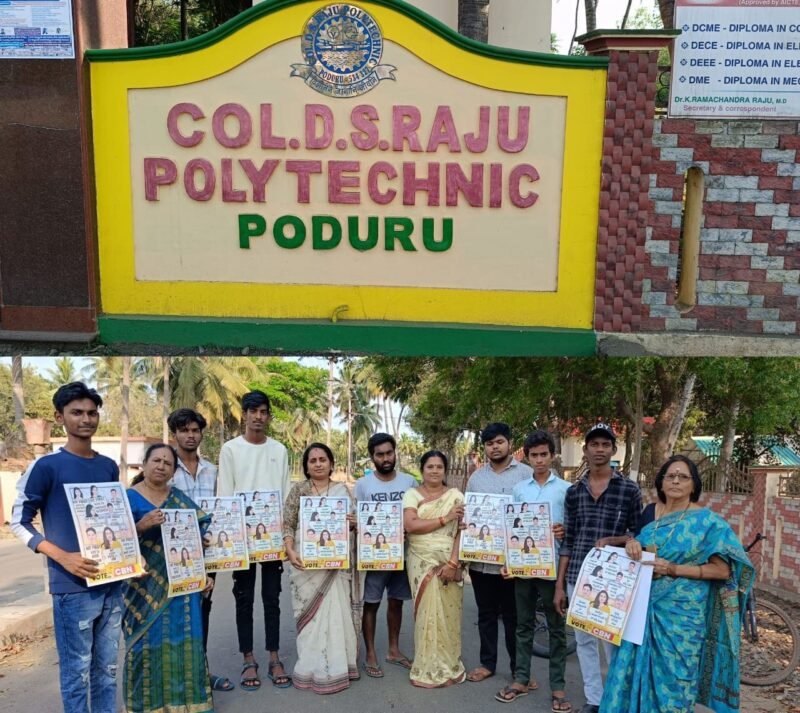పాలకొల్లు: మై ఫస్ట్ ఓట్ ఫర్ సీబీఎన్ కార్యక్రమం రాబోయే 2024 ఎన్నికల్లో మొదటగా ఓటు వేయబోతున్న యువతకు వారి బాధ్యతను గుర్తు చేయడానికి ఎంతో ఉపయోగపడుతోందని రాష్ట్ర మహిళా కమిషన్ మాజీ సభ్యురాలు మరియు పశ్చిమ గోదావరి జిల్లా తెలుగు మహిళా అధ్యక్షురాలు డా. రాజ్యలక్ష్మి శిరిగినీడి కొనియాడారు. ఏ పి వారియర్స్ కార్యక్రమంలో భాగంగా ” మై ఫస్ట్ ఓట్ ఫర్ సి బియన్”ను పాలకొల్లులోని పోడూరు పాలిటెక్నిక్ కాలేజీలో శనివారం నిర్వహించారు.