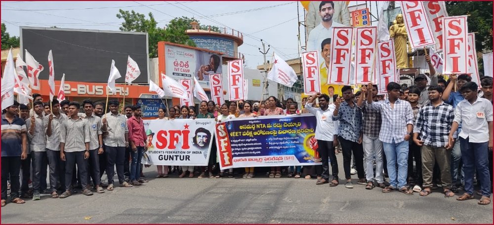 సుప్రీంకోర్టు సైతం నీట్ ఎగ్జామ్ నిర్వహణలో అవకతవకలు జరిగాయని, వాటిని అంగీకరించాలి అని సూచించినా ఇంతవరకు నీట్ పరీక్షను రద్దు చేయకపోవడం కేంద్ర ప్రభుత్వ బాధ్యతారాహిత్యానికి నిదర్శనమన్నారు. నీట్ పరీక్షను వెంటనే రద్దు చేసి మళ్లీ నిర్వహించాలని, వచ్చే విద్యా సంవత్సరం నుండి ఆయా రాష్ర్ట ప్రభుత్వాలే వైద్య విద్య ప్రవేశ పరీక్ష నిర్వహించుకునే విధంగా చర్యలు తీసుకోవాలని కోరారు. ఇప్పటికే తమిళనాడు, కేరళ, మరికొన్ని రాష్ట్రాలు నీట్ రాష్ట్ర ప్రభుత్వమే నిర్వహించుకుంటామని ఆందోళన చేస్తున్నా పట్టించుకోకపోవడం సిగ్గుచేటని అన్నారు. మన రాష్ట్ర ప్రభుత్వం వెంటనే స్పందించి వైద్య విద్య ప్రవేశ పరీక్ష మన రాష్ట్ర ప్రభుత్వమే నిర్వహించే విధంగా కేంద్ర ప్రభుత్వంపై ఒత్తిడి చేయాలని ఆయన డిమాండ్ చేశారు. ఈ కార్యక్రమంలో ఎస్ఎఫ్ఐ జిల్లా ఉపాధ్యక్షురాలు టి.సుచరిత, ఎస్ఎఫ్ఐ జిల్లా సహాయ కార్యదర్శి సుభాష్, ఎస్ఎఫ్ఐ జిల్లా కమిటీ సభ్యులు యశ్వంత్, షంషిద్, ఎస్ఎఫ్ఐ నాయకులు మరియు విద్యార్థిని విద్యార్థులు ఈ కార్యక్రమంలో పాల్గొన్నారు.