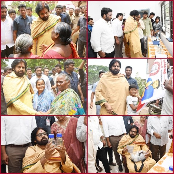 త్వరలో పిఠాపురం నియోజకవర్గం పరిధిలోని ప్రతి గ్రామంలో పర్యటించి ప్రతి సమస్య పరిష్కారానికి కృషి చేస్తానని హామీ ఇచ్చారు. నిన్న మొన్నటి వరకు తనకు కేటాయించిన శాఖల పని తీరుపై ఉన్నత స్థాయి అధికారులతో వరుస సమీక్షల్లో అధ్యయనం చేసిన పవన్ కళ్యాణ్ , ఇప్పుడు క్షేత్ర స్థాయి పరిశీలన మొదలుపెట్టారు. తనకు కేటాయించిన గ్రామీణ రక్షిత మంచినీటి సరఫరాశాఖ పరిధిలో ఉన్న సమ్మర్ స్టోరేజ్ ట్యాంకులు, తాగు నీటి శుద్ధి ప్లాంటుల పని తీరుని స్వయంగా పరిశీంచారు.