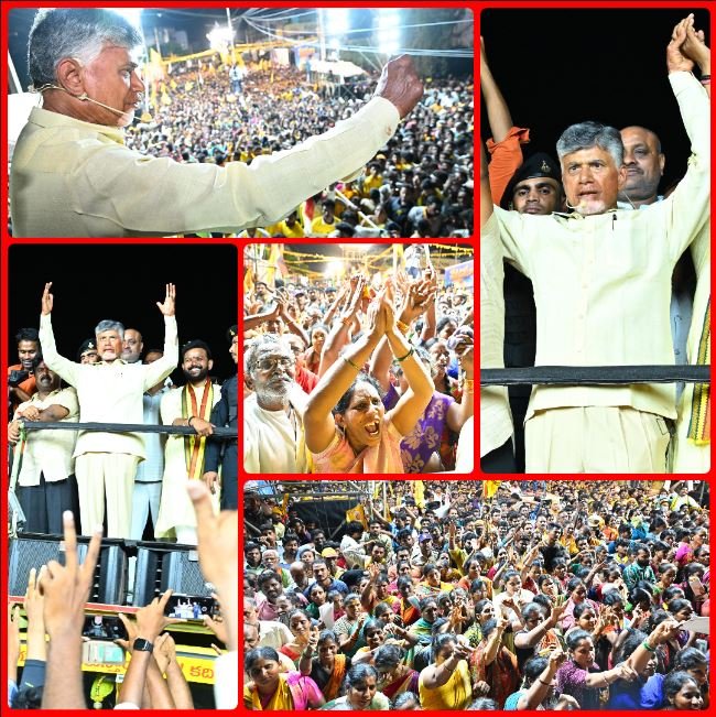కూటమి నాయకులంతా కలిసి వస్తున్నది ప్రజల కోసం. రాష్ట్ర భవిష్యత్తు కోసం. యువతకు ఉద్యోగావకాశాలు కల్పించడం కోసం. ఆడబిడ్డలకు రక్షణ కల్పించడం కోసం. ప్రజలు గెలవాలి. రాష్ట్రం నిలదొక్కుకోవాలనే లక్ష్యంతో కలిసి వచ్చాం. ఐదేళ్లలో 13 లక్షల కోట్లు అప్పు చేసిన దుర్మార్గుడు ఈ జగన్ రెడ్డి. నేను రాష్ట్రాన్ని ఎలా అభివృద్ధి చేశానో హైదరాబాద్ని చూస్తే అర్ధమవుతుంది. ఈ రోజు హైదరాబాద్ ఈ స్థాయిలో నిలబెట్టిందెవరు? అదే విధానంతో అమరావతి నిర్మాణంతో ఉద్యోగాలు, ఉపాధి, ఆదాయం సృష్టించాలనుకున్నాను. పోలవరంతో వ్యవసాయాన్ని పండగ చేయాలనుకున్నాను. దేశంలో ఎక్కువ రైతు అప్పులున్న రాష్ట్రాల్లో ఏపీ అగ్రస్థానం, రైతు ఆత్మహత్యలు, కౌలు రైతుల ఆత్మహత్యల్లోనూ తొలి మూడు స్థానాల్లో ఉన్నామంటే ఈ దుర్మార్గుడు వ్యవసాయాన్ని ఎంతలా దిగజార్చాడో అర్ధం చేసుకోండి.
