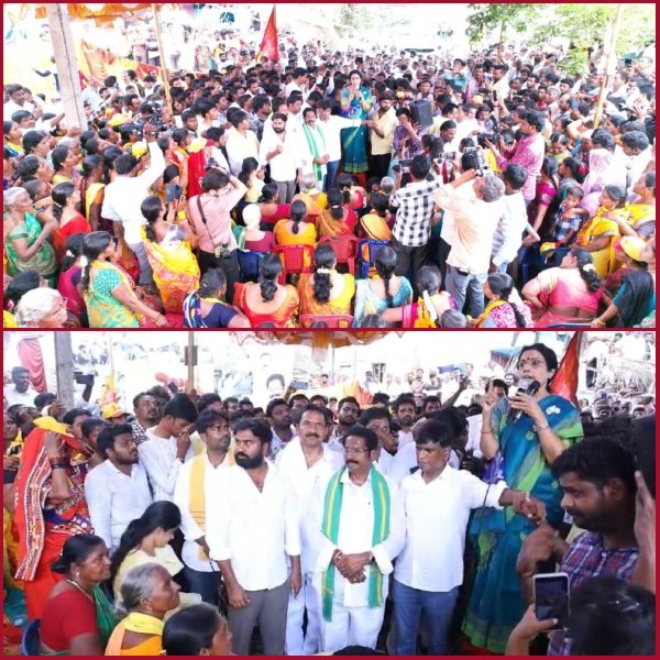 ఈ సందర్భంగా భువనేశ్వరి మాట్లాడుతూ రాష్ట్రంలో దుర్మార్గపు పాల న నడుస్తుందని విమర్శించారు. గంజాయికి కేంద్రంగా మార్చి యువతను నిర్వీర్యం చేస్తున్నారని మండిపడ్డారు. ప్రశ్నించిన వారిపై దాడులు, దౌర్జ న్యాలతో అలజడులు సృష్టించారని దుయ్యబట్టారు. మూడు రాజధానులంటూ ఉన్న రాజధానిని కష్టాల్లోకి నెట్టి భూములిచ్చిన రైతులను కష్టపెట్టారని ఆవేదన వ్యక్తం చేశారు. ఉద్యోగాలు లేక యువత ఇతర రాష్ట్రాలకు వలస వెళ్లే పరిస్థితి నెలకొందన్నారు. హైకోర్టు తప్ప అన్ని ఆస్తులను తాకట్టుపెట్టి దోచుకున్న ఈ ప్రభుత్వం ప్రజల సొంత ఆస్తులను లాక్కునే పరిస్థితి ఉందని ఆరోపించారు. ప్రజలు తమ ఓటు అనే ఆయుధంతో వైకాపా అరాచక పాలనకు చరమగీతం పాడాలని కూటమిని గెలిపించాలని పిలుపునిచ్చారు. ఈ కార్యక్రమంలో పల్నాడు జిల్లా టీడీపీ అధ్యక్షుడు జి.వి.ఆంజనేయులు, మాజీ ఎమ్మెల్యే మక్కెన మల్లికార్జునరావు, బొల్లాపల్లి మండల టీడీపీ నాయకులు, కార్యకర్తలు, వేలాదిగా మహిళలు పాల్గొన్నారు.