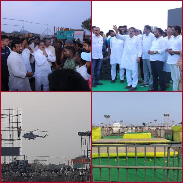 చిలకలూరిపేట16,మహానాడు న్యూస్: ఆదివారం చిలకలూరిపేట సమీపంలోని బొప్పూడిలో నిర్వహించనున్న ప్రతిష్టాత్మక ప్రజాగళం సభకు అన్ని ఏర్పాట్లు పూర్తయ్యాయి.మూడుపార్టీల నాయకుల నిర్విరామ కృషితో వేదిక నిర్మాణం శరవేగంగా పూర్తయింది. తదనంతరం వేదికను ఎన్ఎస్ జి అధికారులకు అప్పగించారు. ఇక ప్రధాని మోడీ రాక దృష్ట్యా 3 హెలీప్యాడ్లు, అలాగే చంద్రబాబునాయుడు, పవన్ కళ్యాణ్, ఇతర నేతలకోసం మరో 3 హెలీప్యాడ్లు సిద్ధం చేశారు.