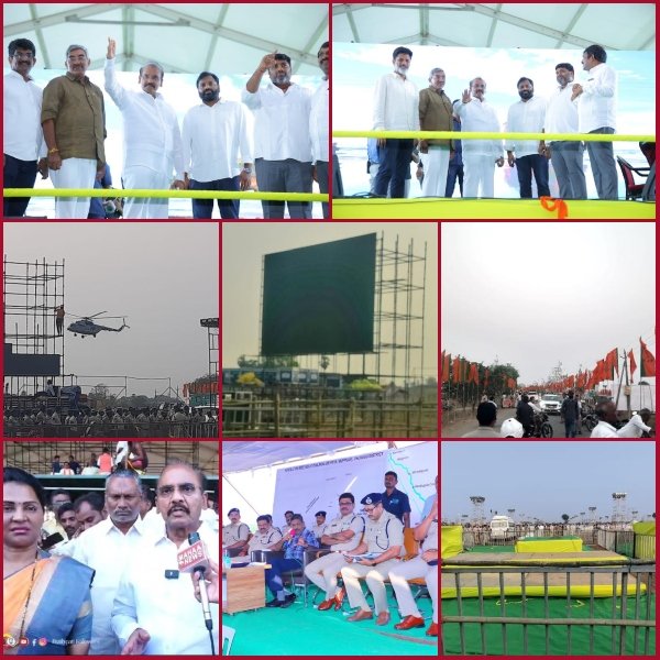 ప్రజాగళం సభతో పాటు చిలకలూరిపేట ఆతిథ్యం అందరికీ ప్రత్యేకంగా గుర్తుండిపోవడం ఖాయమన్నారు. ఆదివారం బొప్పూడి వద్ద జరగనున్న తెలుగుదేశం-జనసేన-బీజేపీ బహిరంగ సభ ఏర్పాట్లను తెలుగుదేశం నేతలు ఆలపాటి రాజా, బీద రవిచంద్ర, దామచర్ల సత్య, కిలారు రాజేష్, తదితరులతో కలిసి ప్రత్తిపాటి పరిశీలించారు. సభా వేదిక, ప్రాంగణంలోని ఏర్పాట్లు, హెలిప్యాడ్లను బృందంతో కలిసి పరిశీలించారు. భద్రతా ఏర్పాట్లపై ఎస్పీజీ ఉన్నతాధికారులతో చర్చించారు. శనివారం రాత్రి బహిరంగ సభ వేదిక వద్ద ఏర్పాట్లను పర్యవేక్షిస్తున్న వారిలో మాజీ మంత్రి పత్తిపాటి పుల్లారావు, ఆలపాటి రాజా, కిలారు రాజేష్, మాజీ ఎమ్మెల్సీ రాజు, బీద రవిచంద్ర, దామచర్ల సత్య, ఉండి ఎమ్మెల్యే రామరాజు తదితరులున్నారు.