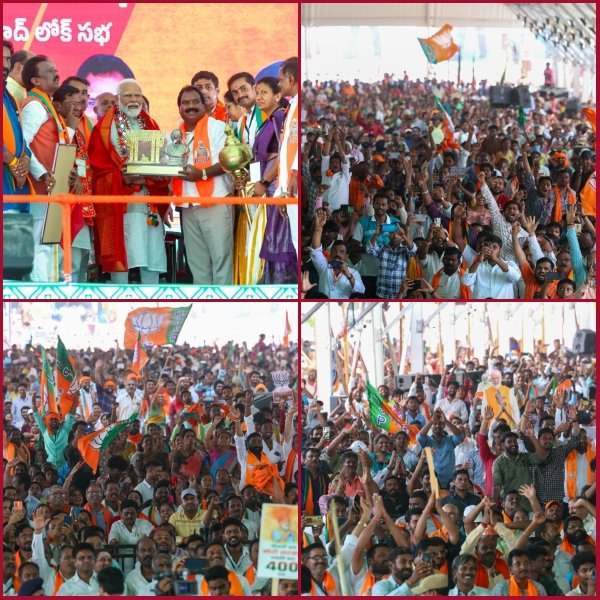 తెలంగాణలో మీ ఉత్సాహం, ఆశీస్సులు అమోఘం. ఇంకొకటి చెప్పగలను! నాలుగో దశలో కాంగ్రెస్ సాధారణ భూతద్దం సరిపోదు. కాంగ్రెస్‌కు సీట్లు దొరకాలంటే మైక్రోస్కోప్ అవసరం. బిజెపి ఎప్పుడూ నేషన్ ఫస్ట్ అనే సూత్రం మీద నడుస్తుంది, అయితే తెలంగాణలో కాంగ్రెస్ మరియు బిఆర్ఎస్ – ఫ్యామిలీ ఫస్ట్ అనే సూత్రంపై నడుస్తాయి. కాంగ్రెస్-బీఆర్ఎస్ అనుసంధానం-అవినీతి! కాంగ్రెస్-బీఆర్ఎస్ చేరికలు- బుజ్జగింపు రాజకీయాలు! కాంగ్రెస్ బీఆర్‌ఎస్‌లో చేరింది – వారి నమూనా జీరో గవర్నెన్స్!