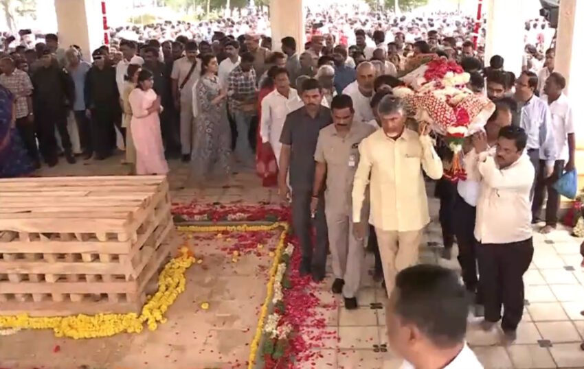 హైదరాబాద్: రామోజీ ఫిలిం సిటీలో ఆదివారం జరిగిన అక్షర యోధుడు చెరుకూరి రామోజీరావు అంతిమయాత్ర కార్యక్రమంలో టీడీపీ అధినేత చంద్ర బాబు పాల్గొన్నారు. రామోజీరావు పాడె మోశారు. అంత్యక్రియల్లో తెదేపా జాతీయ ప్రధాన కార్యదర్శి నారా లోకేష్, పొలిట్ బ్యూరో సభ్యులు కొల్లు రవీంద్ర, మాజీ మంత్రి దేవినేని ఉమామహేశ్వరరావు, జనసేన పార్టీ ఇన్చార్జ్ బండి రామకృష్ణ తదితరులు పాల్గొన్నారు. ఈ సందర్భంగా కొల్లు రవీంద్ర రామోజీరావు మృతికి సంతాపం ప్రకటించి కుటుంబసభ్యులకు ప్రగాఢ సానుభూతి తెలిపారు.