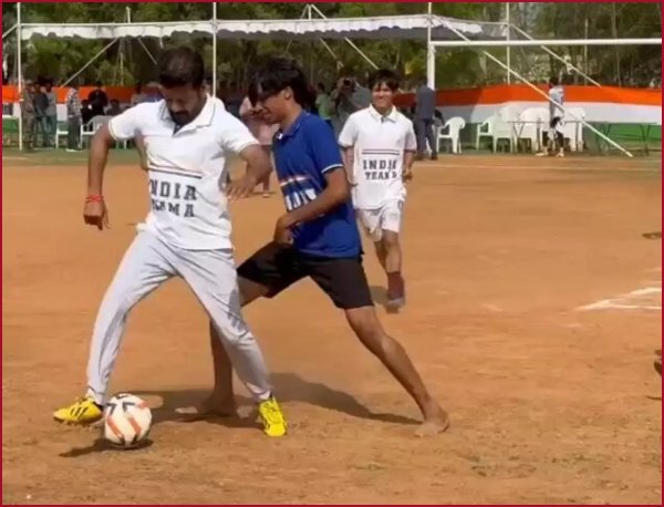 హైదరాబాద్‌, మహానాడు: హైదరాబాద్‌ సెంట్రల్‌ యూనివర్సిటీలో ఆదివారం ఉదయం ముఖ్యమంత్రి రేవంత్‌రెడ్డి విద్యార్థులతో సరదాగా ఫుట్‌బాల్‌ ఆడారు. హెచ్‌సీయూ ఎన్‌ఎస్‌యూఐ యూనిట్‌, ఎన్‌ఎస్‌యూఐ రాష్ట్ర అధ్యక్షుడు బల్మార్‌ వెంకట్‌, హెచ్‌సీయూ ఎన్‌ఎస్‌యూఐ ఇన్‌చార్జ్‌ అజయ్‌ ఆధ్వర్యంలో మ్యాచ్‌ జరిగింది. మధ్యలో షూ పాడైనా షూస్‌ లేకుండానే పాల్గొని ఉత్సాహపరిచారు. రేవంత్‌తో పాటు ఎమ్మెల్సీ బల్మార్‌ వెంకట్‌, ఎంపీ అనిల్‌కుమార్‌ యాదవ్‌, టీఎంఆర్‌ఐఈఎస్‌ ప్రెసిడెంట్‌ ఫహీం ఖురేషి, హెచ్‌సీయూ ఎన్‌ఎస్‌యూఐ యూనిట్‌, హెచ్‌సీయూ విద్యార్థులు మ్యాచ్‌లో పాల్గొన్నారు. రేవంత్‌తో పాటు సీఎం సలహా దారుడు వేం నరేందర్‌రెడ్డి, ప్రభుత్వ సలహాదారుడు హర్కర్‌ వేణుగోపాల్‌, ఫుడ్‌ కార్పొ రేషన్‌ చైర్మన్‌ ఎం.ఎ.ఫహీం, టీ శాట్‌ సీఈవో వేణుగోపాల్‌రెడ్డి ఉన్నారు.