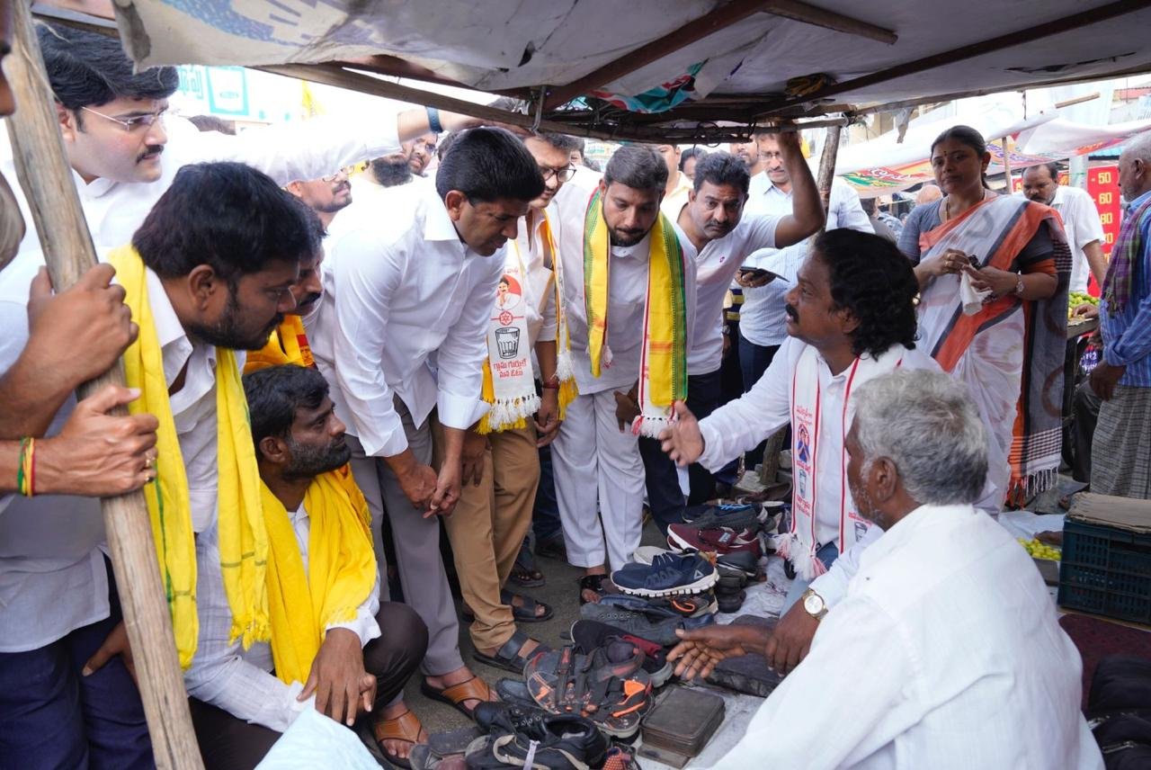 గుంటూరు, మహానాడు: జగన్ అరాచక పాలనను అరికట్టి ప్రజలకు టీడీపీ జెండా అండగా ఉంటుందని, అందుకు అనుగుణంగానే టీడీపీ ఆధ్వర్యంలో సూపర్ సిక్స్ భరోసా ఇస్తోందని గుంటూరు పార్లమెంట్ టీడీపీ అభ్యర్థి డాక్టర్ పెమ్మసాని చంద్రశేఖర్ అన్నారు. గుంటూరు తూర్పు నియోజకవర్గంలోని 55వ డివిజన్లో ఎన్నికల ప్రచారంలో భాగంగా తూర్పు అభ్యర్థి నశీర్ అహ్మద్తో కలిసి శనివారం పర్యటించారు. ఈ సందర్భంగా చర్మకారులను, చిరు వ్యాపారులు, నివాసితులను పెమ్మసాని కలుసు కున్నారు. వృత్తి పరమైన, స్థానిక సమస్యలతో పాటు అధికార పార్టీ స్థానిక నాయకుల నుంచి ఎదుర్కొంటున్న ఇబ్బందులను అడిగి తెలుసుకున్నారు. కాగా ఇంటి పట్టాలు, తాగునీటి సమస్యలు, పెరిగిన కరెంటు చార్జీలు తదితర సమస్యల ను ప్రజలు పెమ్మసాని ముందు ఏకరువు పెట్టారు. ఈ సందర్భంగా పెమ్మసాని మాట్లాడుతూ కేవలం రెండు నెలల్లో టీడీపీ ప్రభుత్వం వస్తుందని, అధికారంలోకి వచ్చిన ఏడాదిలోపే తాగునీటి సమస్యను పరిష్కరిస్తామని చెప్పారు. ఈ కార్యక్రమంలో డివిజన్ నాయకులు, కార్పొరేటర్లు తదితరులు పాల్గొన్నారు.