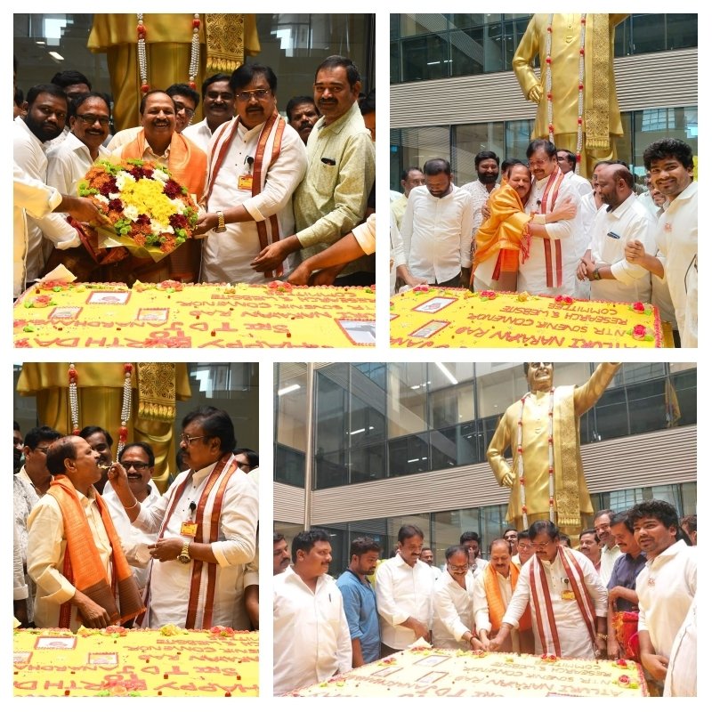 టీడీపీ మాజీ ఎమ్మెల్సీ టీ.డీ జనార్ధన్ రావు జన్మదిన వేడుకలు మంగళవారం నాడు మంగళగిరిలోని టీడీపీ జాతీయ కార్యాలయంలో ఘనంగా నిర్వహించారు. ఈ సందర్భంగా ఎన్టీఆర్ శతజయంతి ఉత్సవాల కన్వీనర్ అట్లూరి నారాయణరావు ఆధ్వర్యంలో భారీ కేక్ ను కట్ చేసి అన్నదానం కార్యక్రమం నిర్వహించారు.