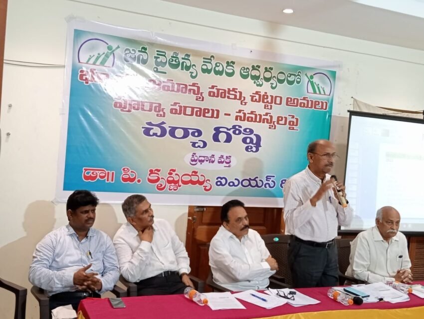గుంటూరు, మహానాడు : రాష్ట్ర ప్రభుత్వం భూ యాజమాన్య హక్కు చట్టాన్ని అమలు చేస్తే ప్రజల పాలిట శాపంగా మారుతుందని రిటైర్డ్ ఐఏఎస్ అధికారి పి.కృష్ణయ్య పేర్కొన్నారు. జనచైతన్య వేదిక హాలులో భూ యాజమాన్య హక్కు చట్టం అమలు పూర్వ పరాలు – సమస్యలు అనే అంశంపై జరిగిన చర్చా గోష్టికి జన చైతన్య వేదిక రాష్ట్ర అధ్యక్షుడు వల్లం రెడ్డి లక్ష్మణరెడ్డి అధ్యక్షత వహించారు. ఈ సందర్భంగా కృష్ణయ్య ప్రసంగిస్తూ చట్టంలో చెప్పిన నిర్ధిష్ట కాలంలో లీజులు, తనఖాలు, ఇతర అన్యాక్రాంతాలు, క్రయ విక్రయాలను భూమి ఆస్తి హక్కు అధికారి వద్ద నమోదు చేయడంలో ఆస్తి యాజమానులు విఫలమైతే ఆరు నెలల జైలుశిక్ష లేదా 50 వేల జరిమానా విధించడాన్ని తీవ్రంగా ఖండిరచారు. భూ హక్కుల నిర్ధారణ, వివాదాల పరిష్కారాలను స్వతంత్ర ప్రతిపత్తి కలిగిన న్యాయ స్థానాల నుంచి తొలగించి ప్రభుత్వ కనుసన్నలలో పనిచేసే రెవెన్యూ అధికారులకు పూర్తి అధికారా లను సంక్రమింప చేయటం వల్ల అనేక కొత్త సమస్యలు ఉత్పన్నమవుతాయన్నారు.