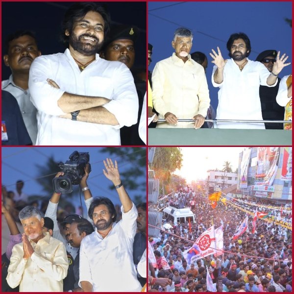 ఈ సందర్భంగా పవన్ కళ్యాణ్ మాట్లాడుతూ “గత అయిదేళ్ల నుంచి ఇప్పటి వరకు దౌర్భాగ్యపు ప్రభుత్వాన్ని, దోపిడీ ప్రభుత్వాన్ని ప్రజలు చూశారు. అల్లర్లు రేపి, శాంతిభద్రతలను నాశనం చేసి పరిపాలించిన వైసీపీని చూశారు. ఇప్పుడు రాష్ట్రాన్ని తిరిగి కాపాడుకునే బాధ్యతను ప్రజలు తీసుకోవాలి. కూటమి ప్రభుత్వాన్ని గెలిపించుకోవడం ద్వారా సరికొత్త రాష్ట్ర భవిష్యత్తు ఆవిష్కారం అవుతుంది. శాంతి భద్రతలు బలంగా ఉండేలా చర్యలు తీసుకుంటాం. బలమైన వ్యక్తులంతా ప్రజల కోసం పని చేస్తే ఎలా ఉంటుందో చూపిస్తాం. వైసీపీ ప్రచారం చేస్తున్నట్లుగా కూటమి ప్రభుత్వం వస్తే ఏ సంక్షేమ పథకం ఆగిపోదు. ఇప్పుడున్న దాని కంటే పది రూపాయలు ఎక్కువ ఇవ్వాలనే ఆలోచిస్తాం. దీన్ని ప్రజలు మనస్ఫూర్తిగా నమ్మండి. ఏ అధికారం లేనప్పుడే ఆత్మహత్య చేసుకున్న కౌలు రైతుల కుటుంబాలను సొంత డబ్బుతో ఆదుకున్న వాడిని. ప్రజా ధనం వారికే చెందేలా చూసే బాధ్యత తీసుకుంటాను.