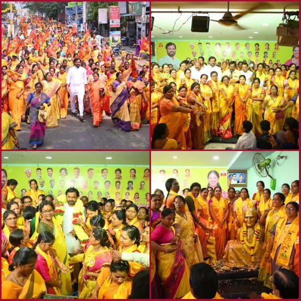 మహిళలకు దీపం పథకం కింద .. ఏడాదికి 3 సిలిండర్లు ఉచితంగా ఇవ్వడం, ఆర్టీసీ బస్సుల్లో ఉచిత ప్రయాణం.. వంటి ప్రత్యేకమైన సంక్షేమ పథకాలు ఉన్నాయన్నారు. కార్యక్రమంలో ముందుగా అధిక సంఖ్యలో తెలుగు మహిళలు ర్యాలీగా కల్యాణ మండపం చేరుకున్నారు. తెలుగుదేశం పార్టీ వ్యవస్థాపకులు స్వర్గీయ ఎన్టీ రామారావు విగ్రహానికి పూలమాలలు వేసి నివాళులర్పించారు.